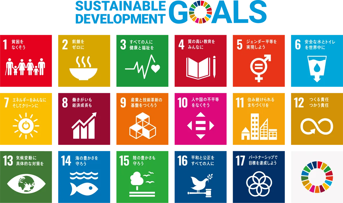 2015年9月の国連サミットで採択された「持続可能な開発目標(Sustainable Development Goals)」の略称で、2030年までの国際目標です。