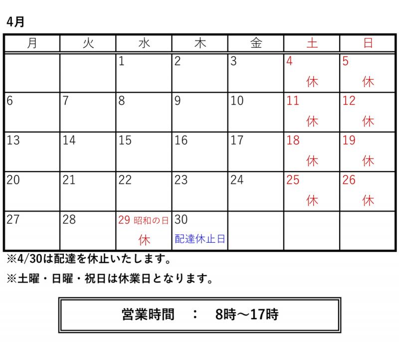 4月の休業日