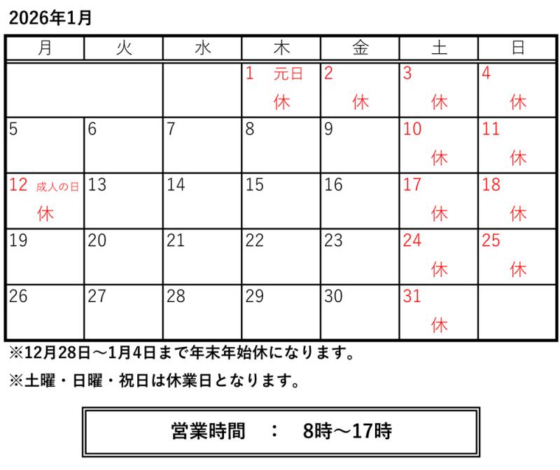 1月の休業日